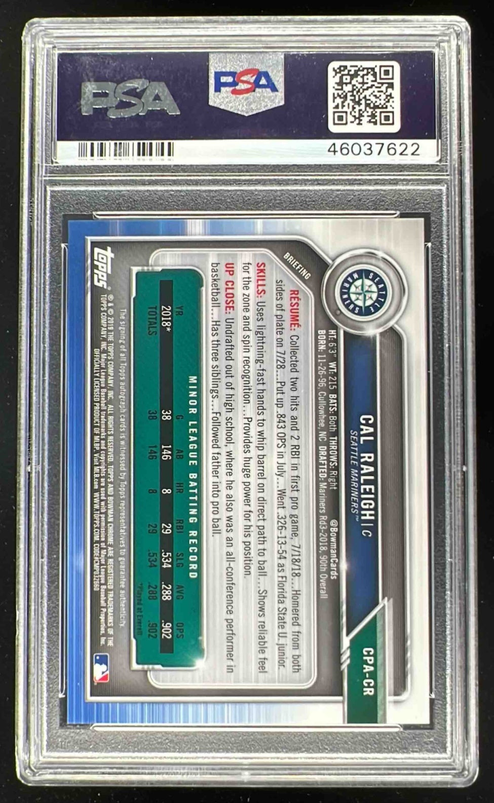 2019 Bowman Chrome Rookie Autograph Blue Cal Raleigh RC Auto /150 PSA 9
