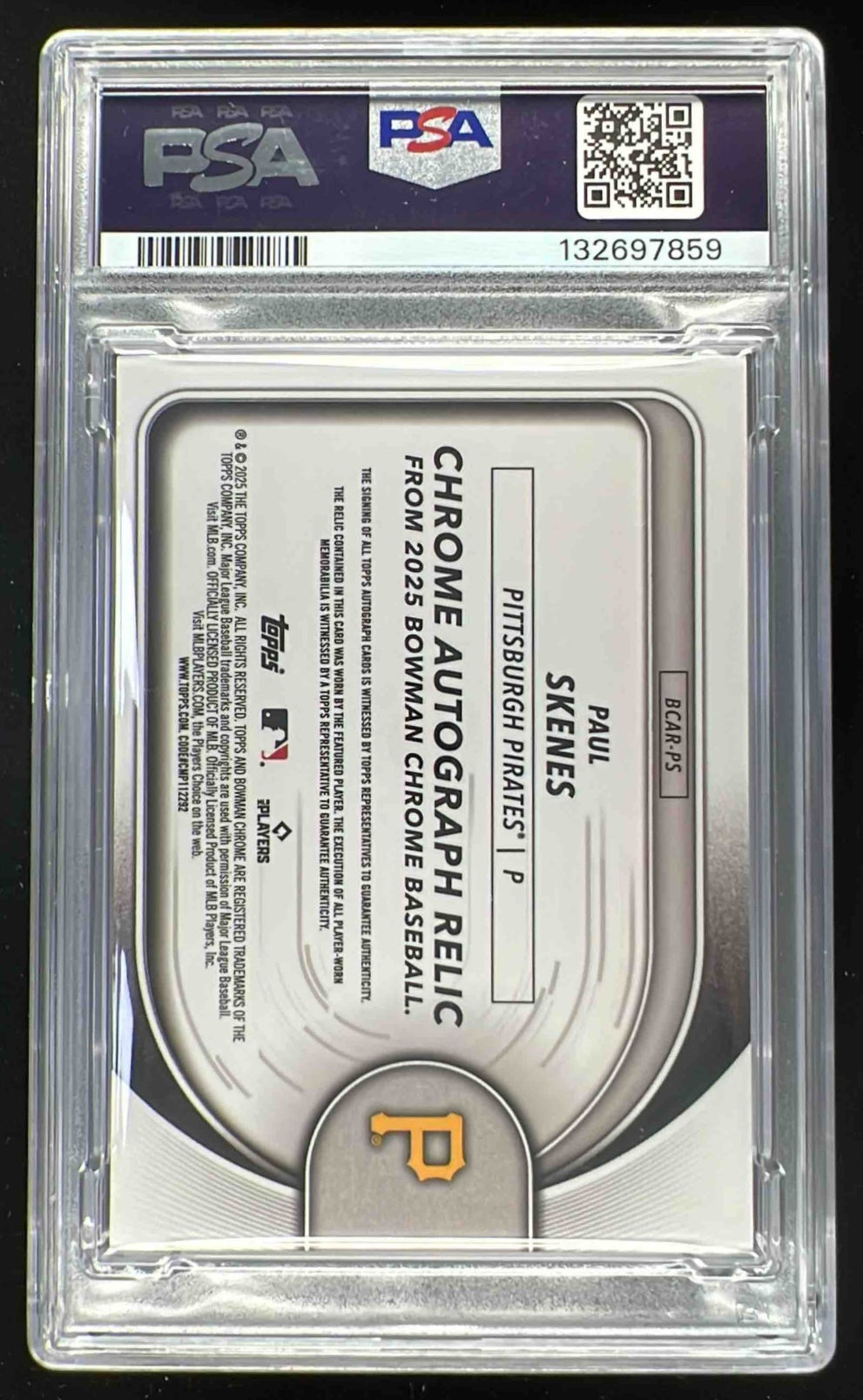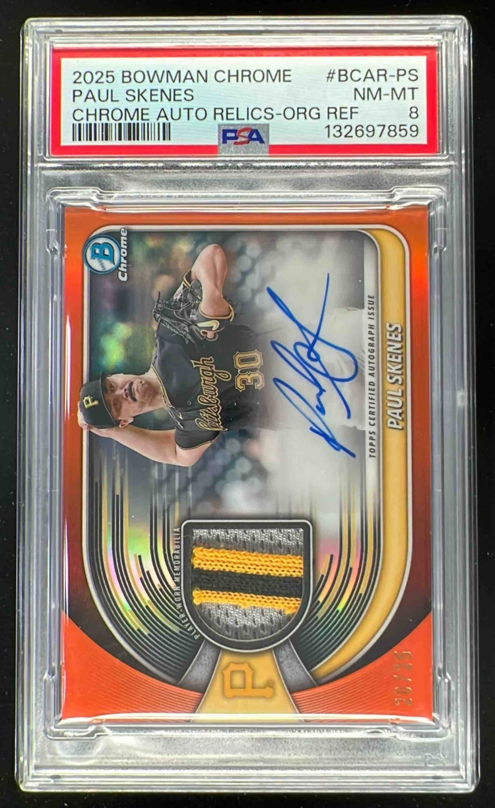 2025 Bowman Chrome Relic Orange Refractor #BCAR-PS Paul Skenes Auto /25 PSA 8
