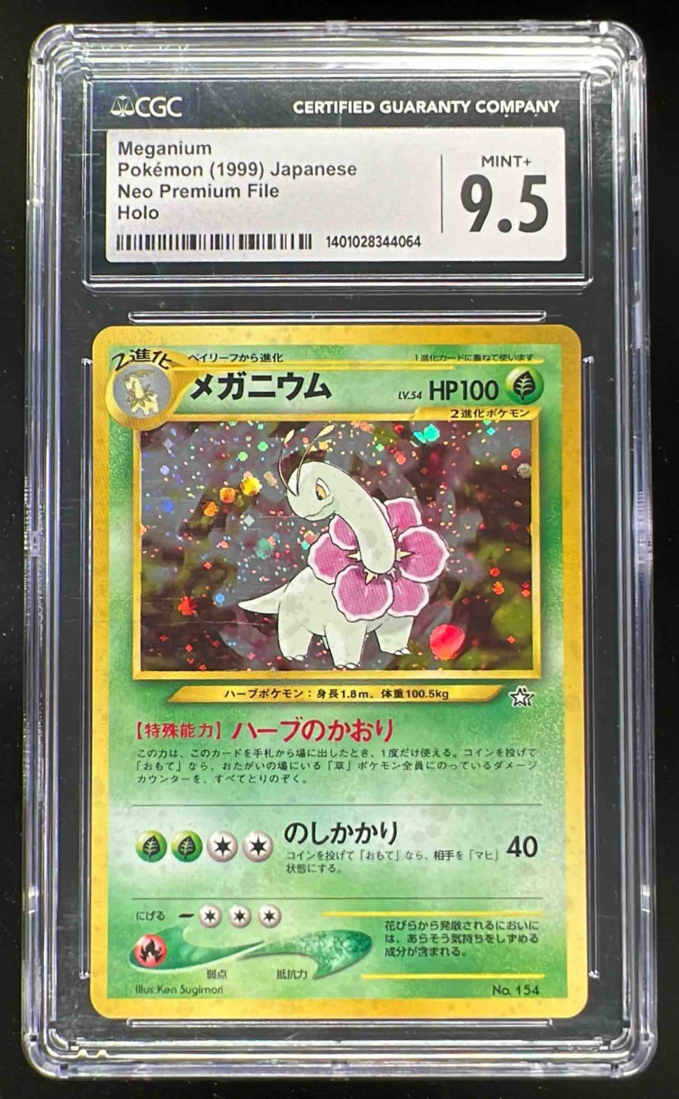 1999 Pokemon Japanese Neo Premium File #154 Meganium Holo CGC 9.5