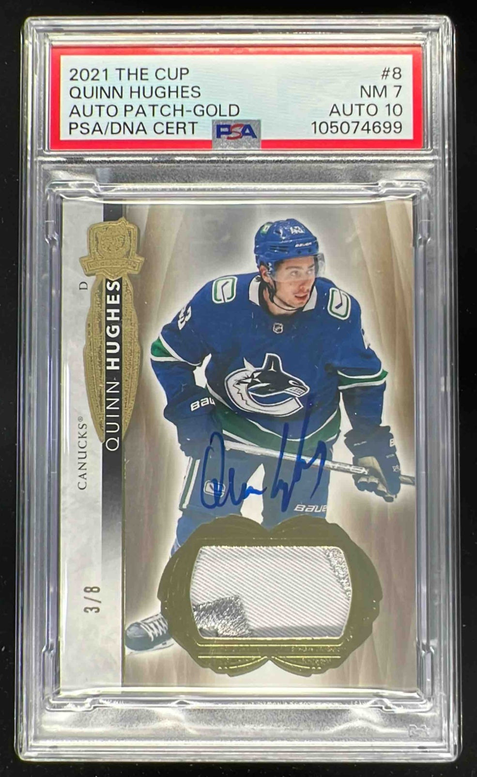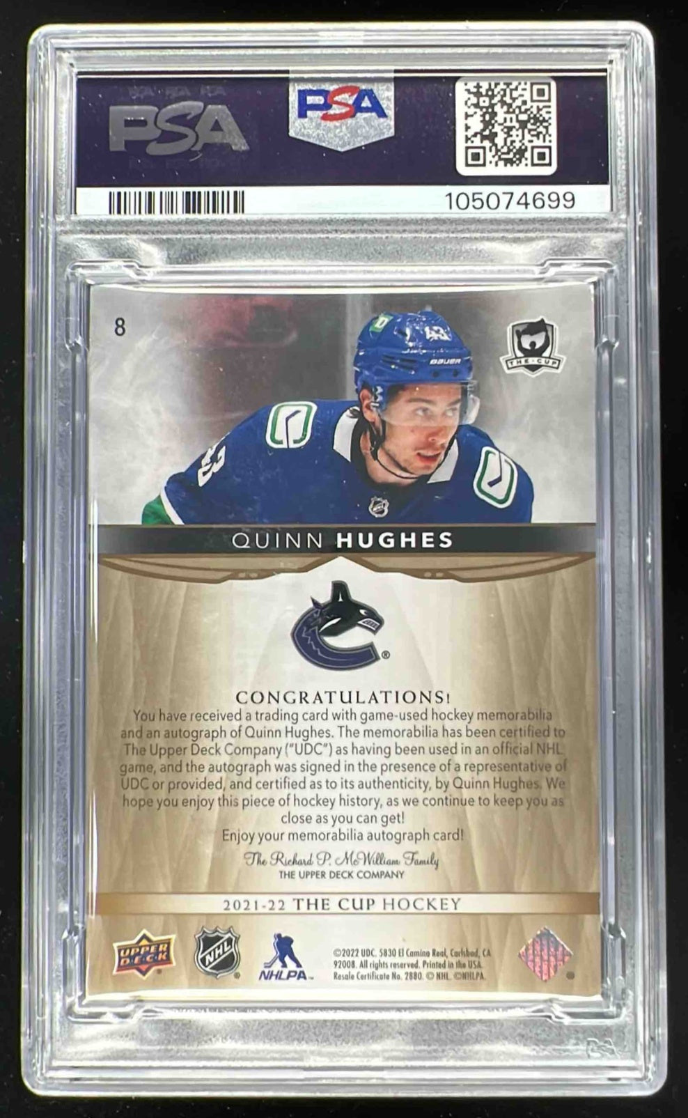 2021-22 Upper Deck The Cup Gold Foil #8 Quinn Hughes Autograph Auto /8 PSA 7
