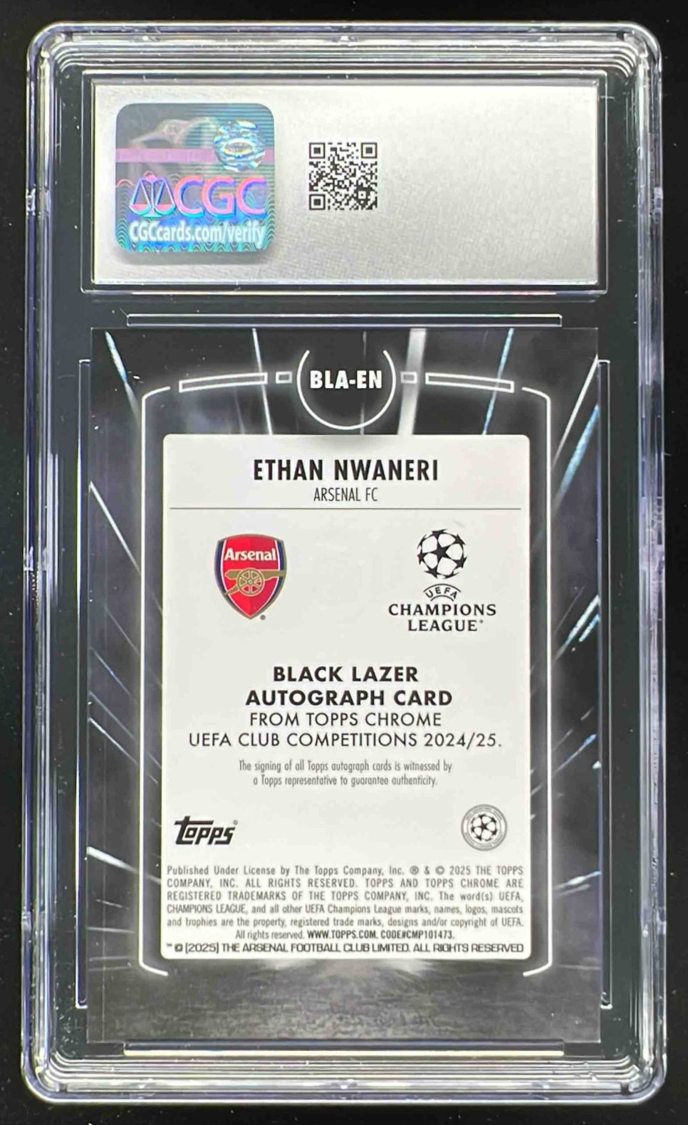 2024-25 Topps Chrome Black Lazer Autographs #BLA-EN Ethan Nwaneri RC Auto CGC 10
