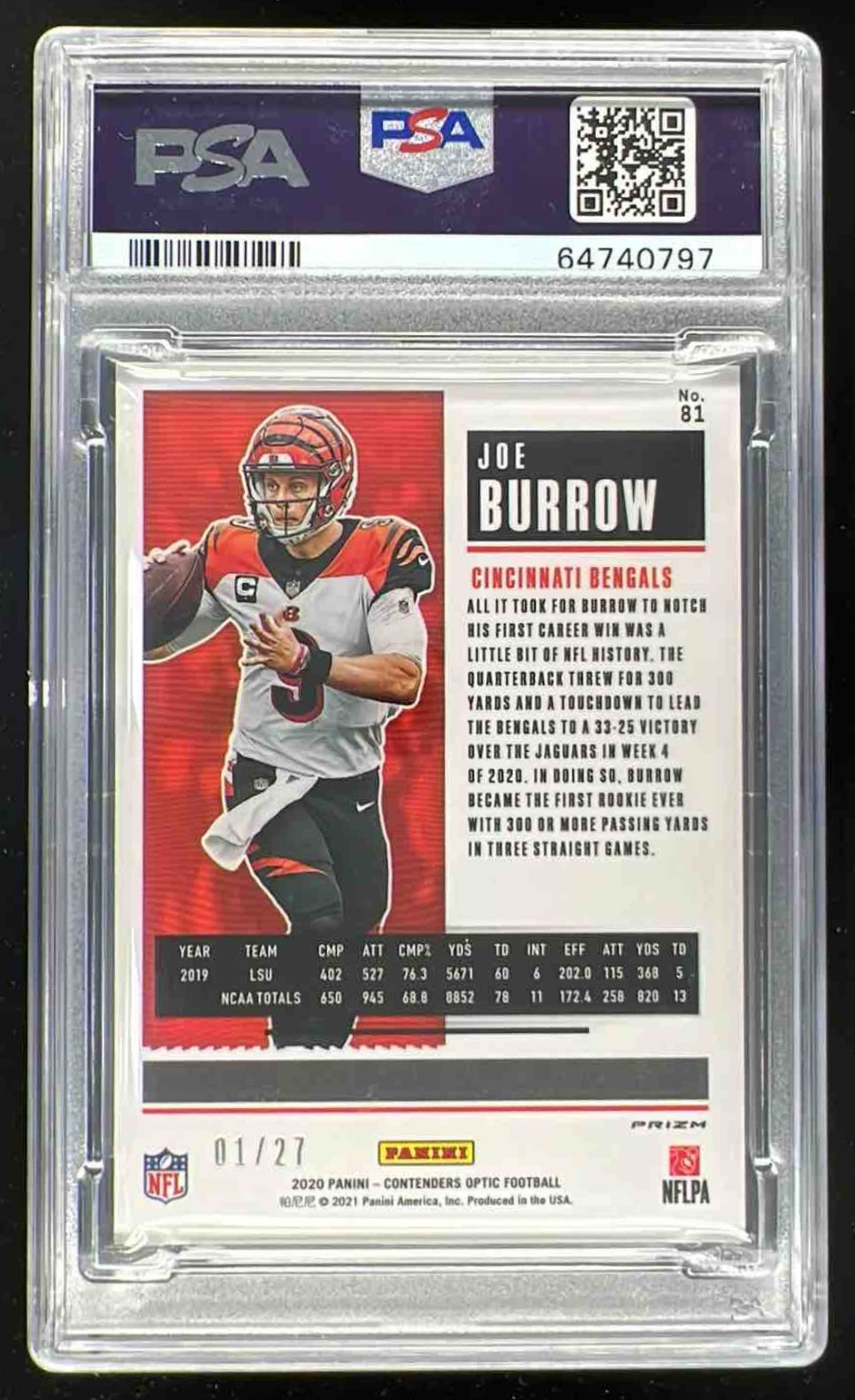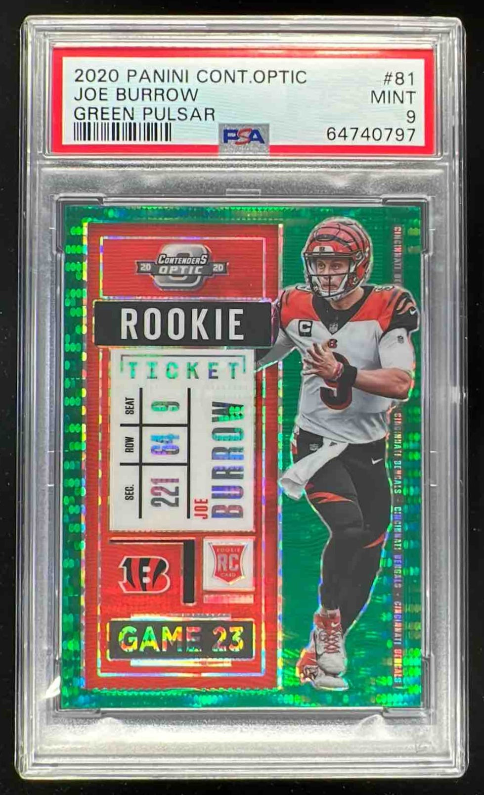2020 Contenders Optic Green Pulsar #81 Joe Burrow RC Rookie Ticket /27 PSA 9