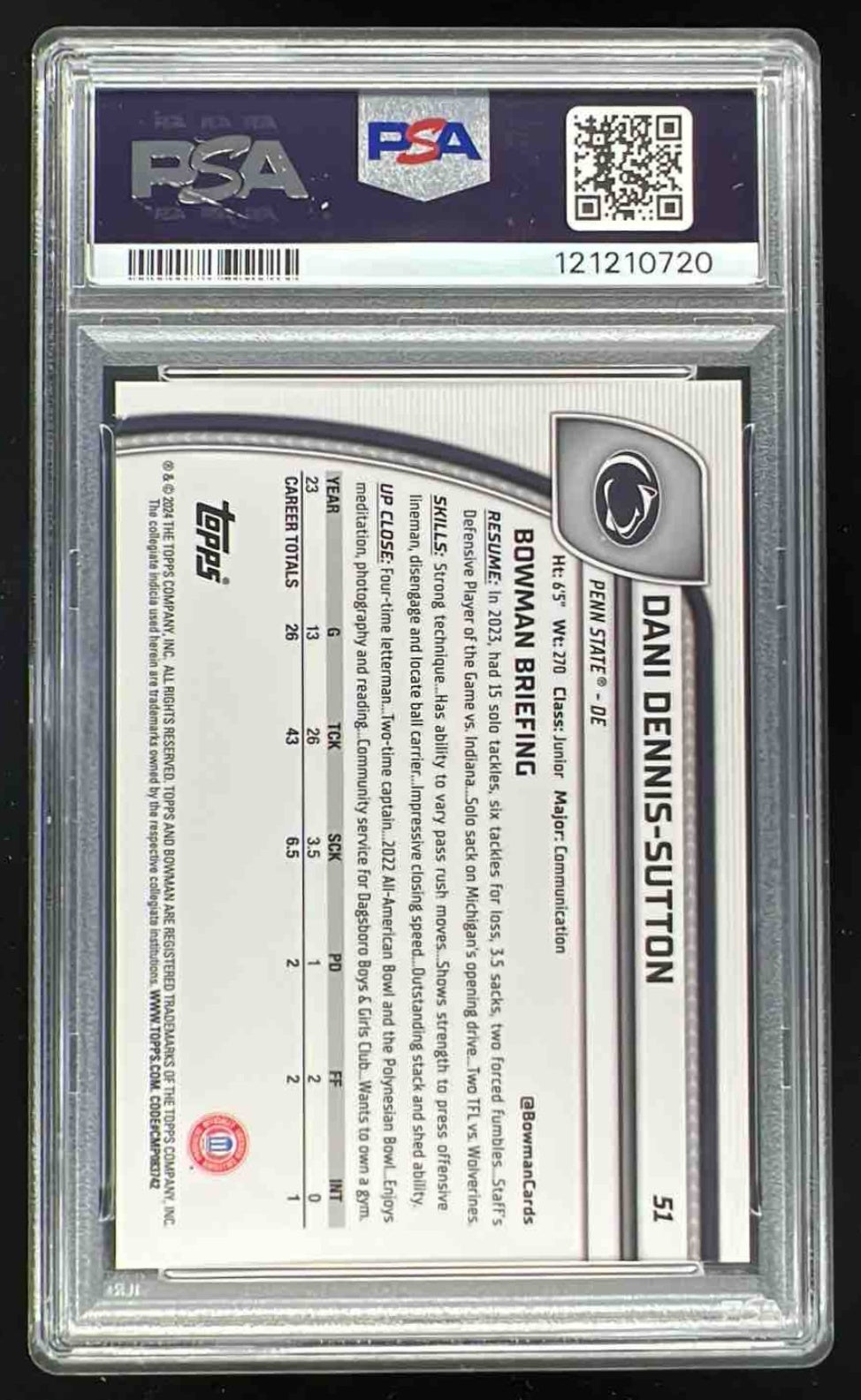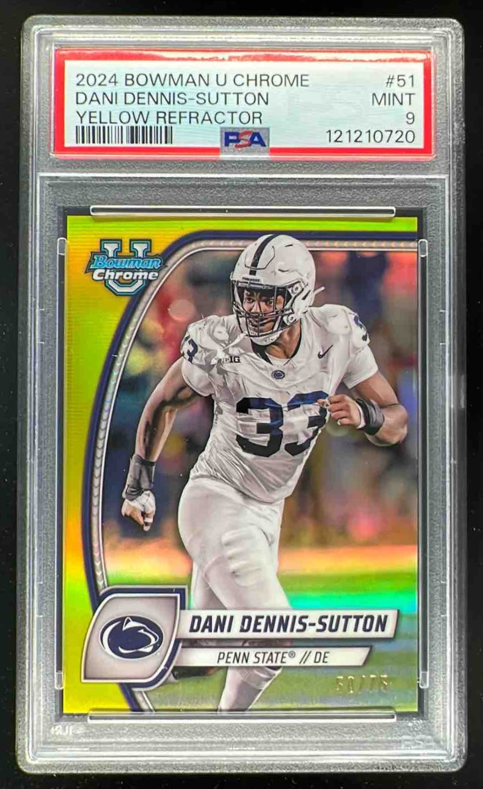 2024 Bowman Chrome University Yellow Refractor #51 Dani Dennis-Sutton /75 PSA 9