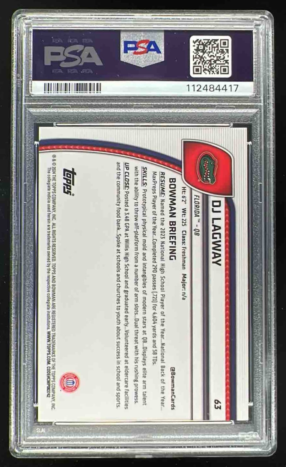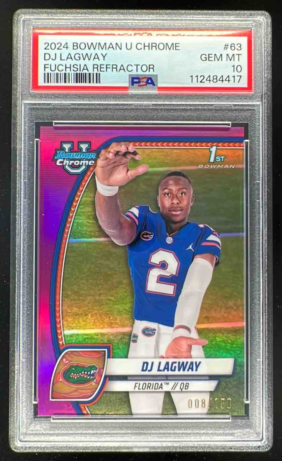2024 Bowman Chrome University Fuchsia Refractor #63 DJ Lagway RC /150 PSA 10