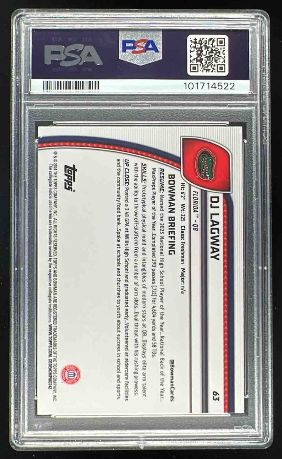 2024 Bowman Chrome University #63 DJ Lagway RC PSA 10