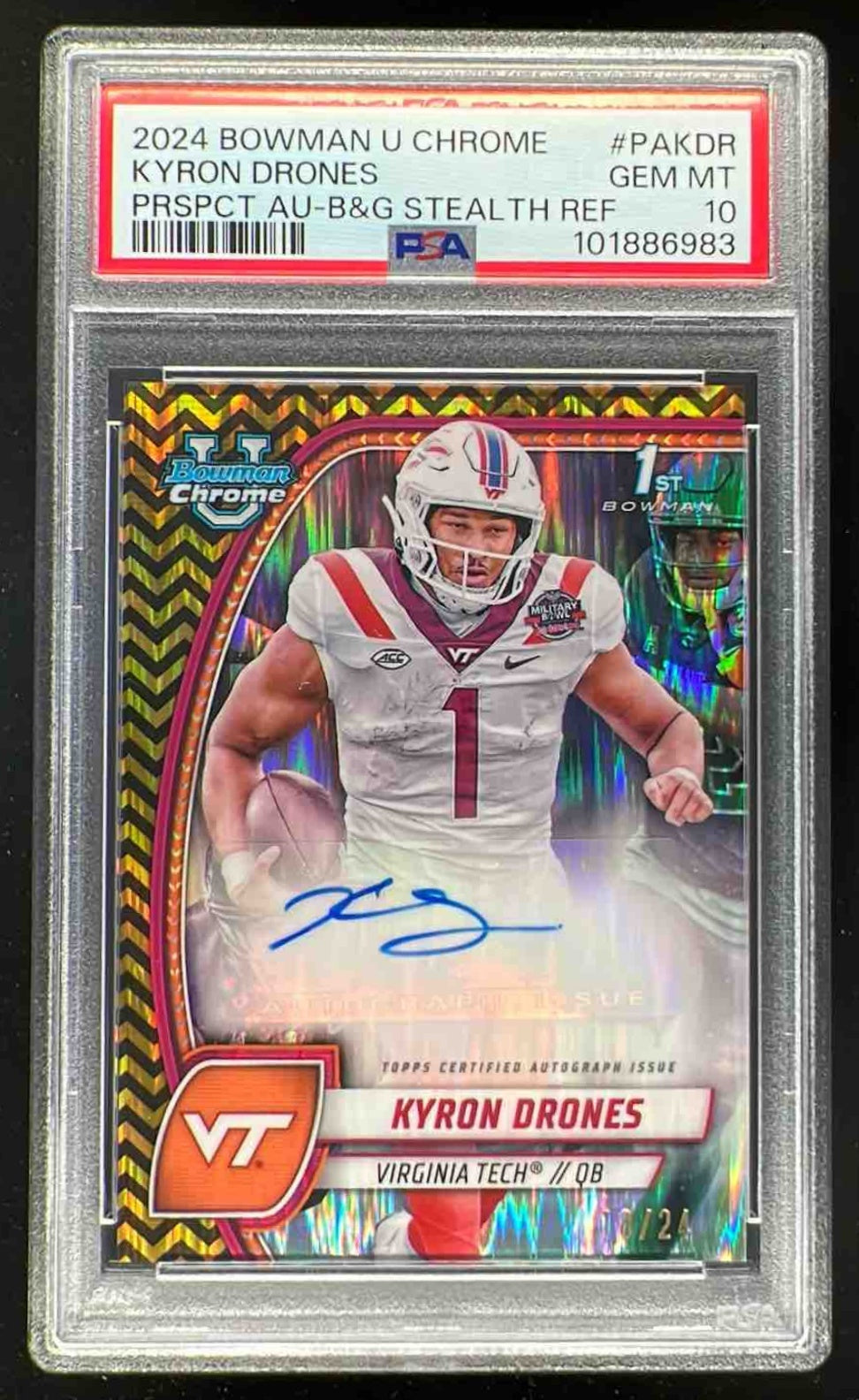 2024 Bowman Chrome University Black Gold Stealth Kyron Drones Auto /24 PSA 10