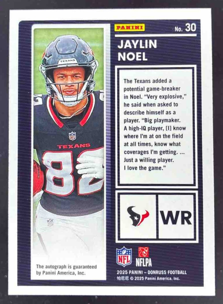 2025 Panini Donruss The Rookies Autographs #30 Jaylin Noel RC Auto /299
