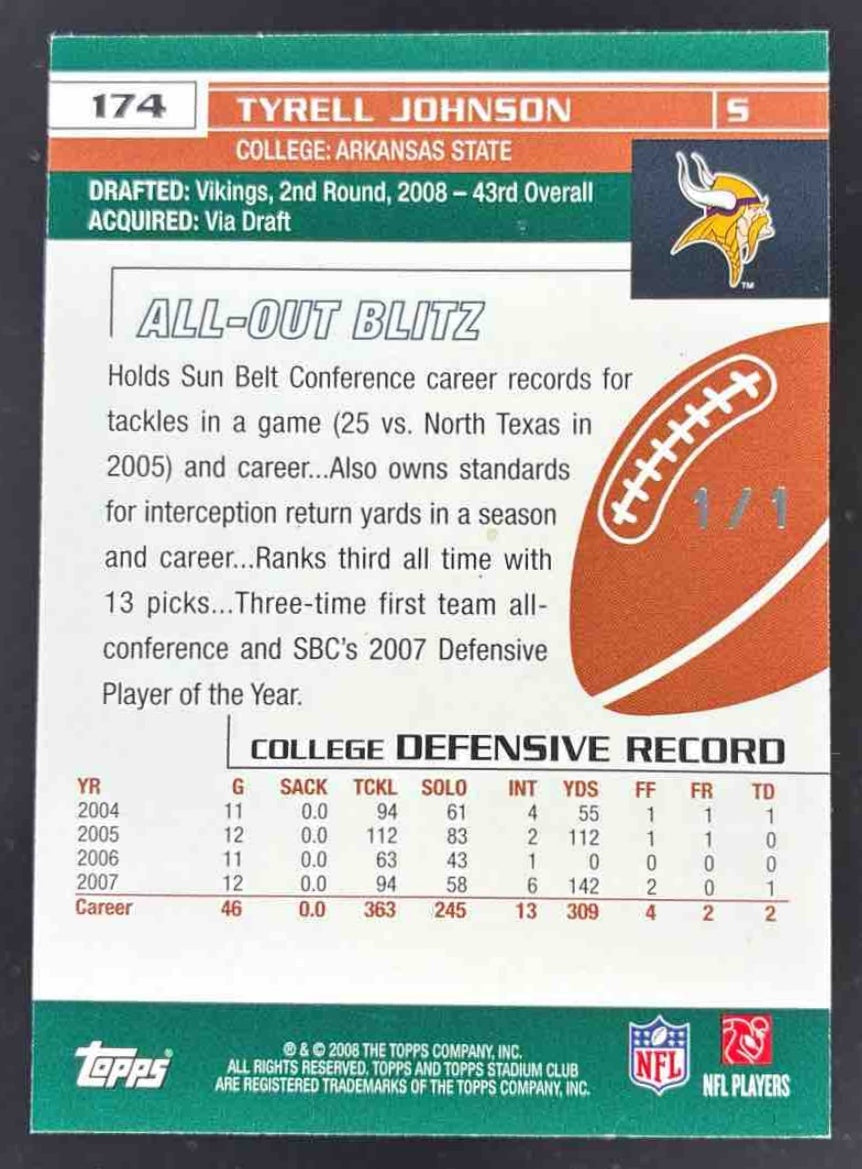 2008 Topps Stadium Club Printing Plates Magenta #174 Tyrell Johnson RC 1/1