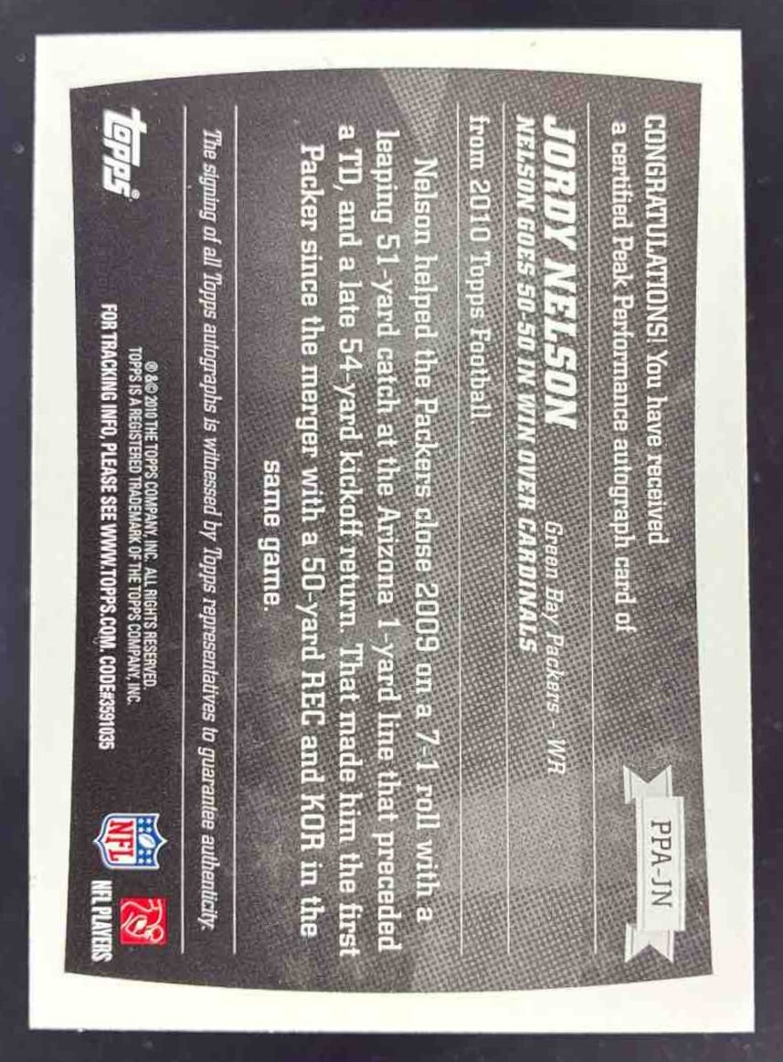 2010 Topps Peak Performance Autographs #PPA-JN Jordy Nelson Auto