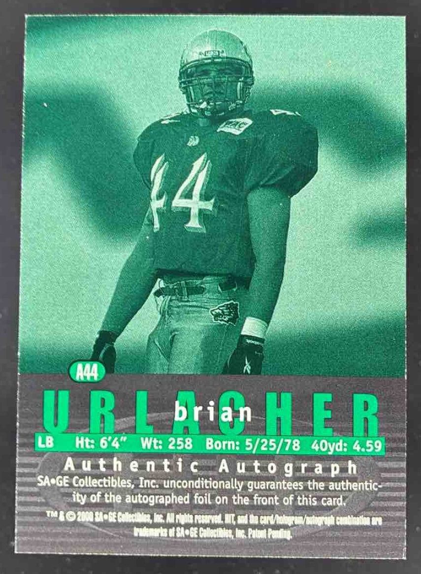 2000 SAGE HIT Autographs Emerald #A44 Brian Urlacher RC Auto