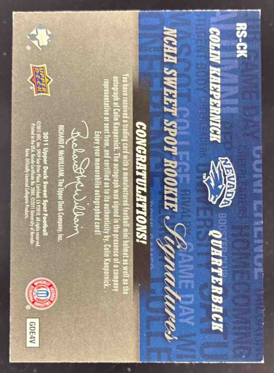 2011 Sweet Spot Rookie Signature Variations #RS-CK Colin Kaepernick RC Auto /299
