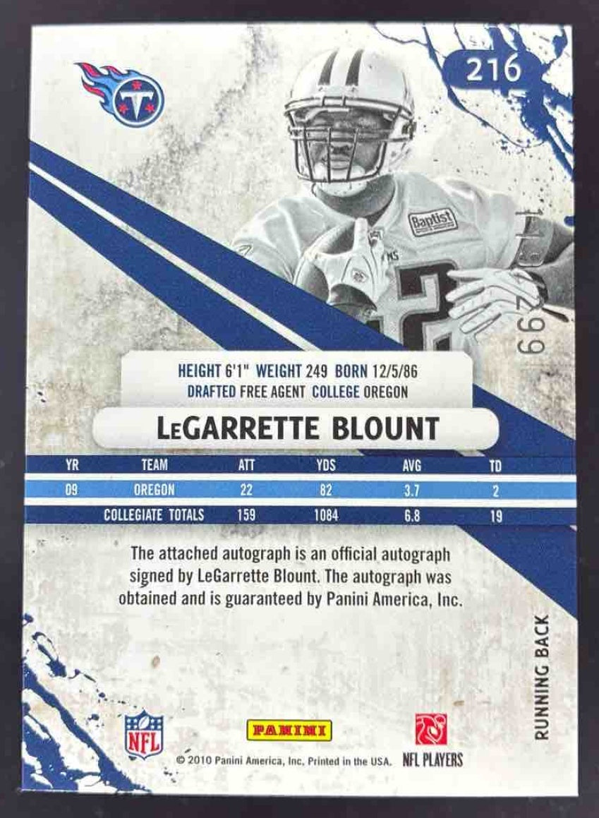 2010 Rookies & Stars Longevity Autographs #216 LeGarrette Blount RC Auto /299