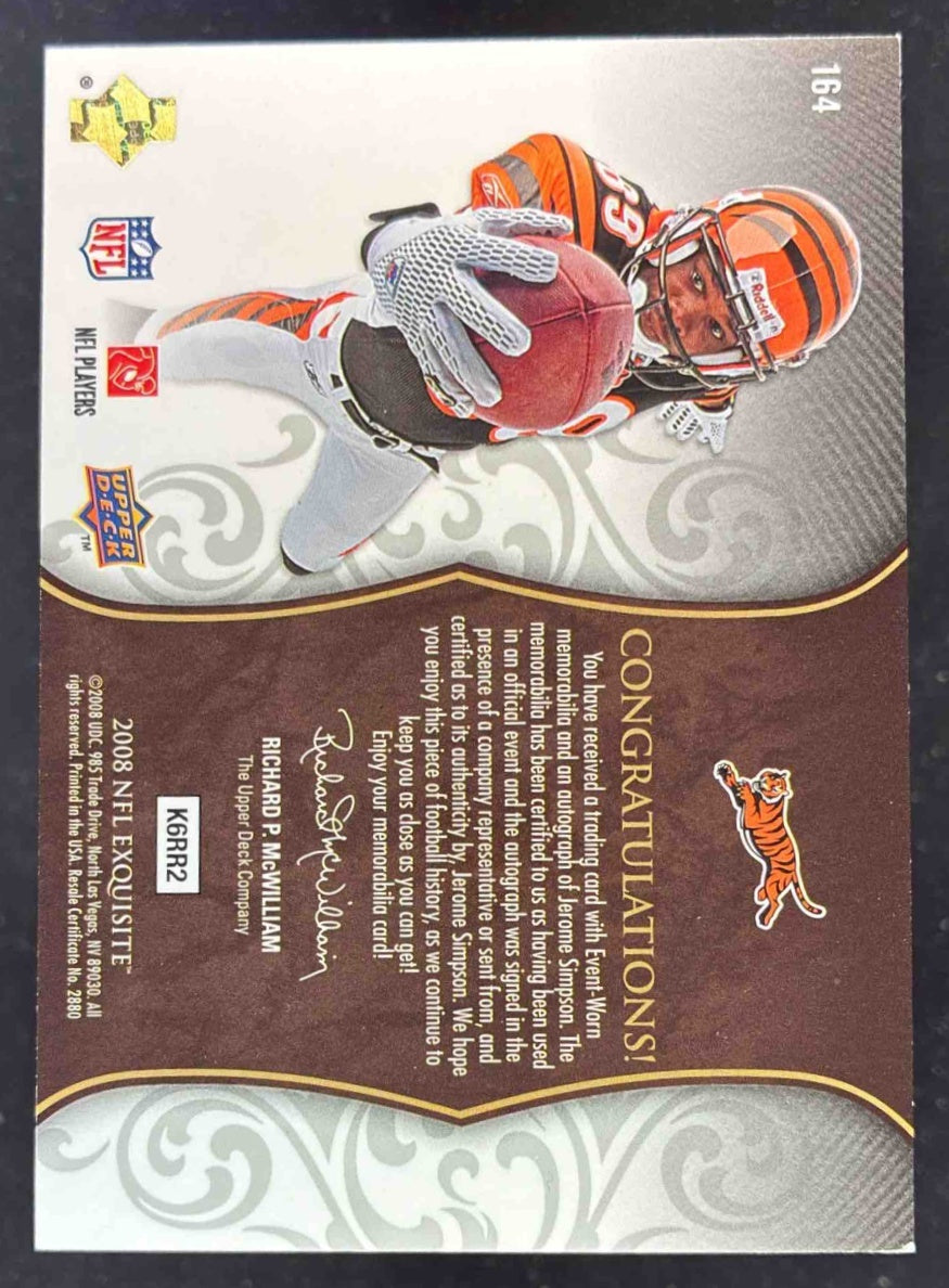 2008 Exquisite Collection Silver Holofoil #164 Jerome Simpson RC Auto /75