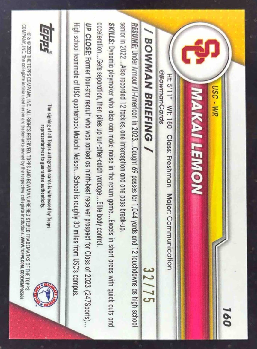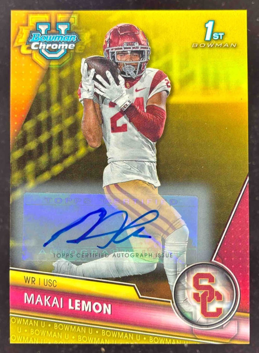 2023 Bowman University Chrome Yellow Refractor #160 Makai Lemon Auto /75