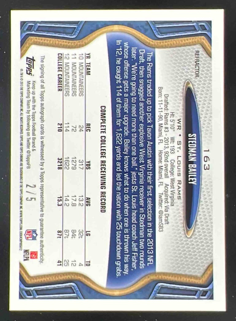 2013 Topps Chrome Rookie Autograph Red Refractors #163 Stedman Bailey RC Auto /5