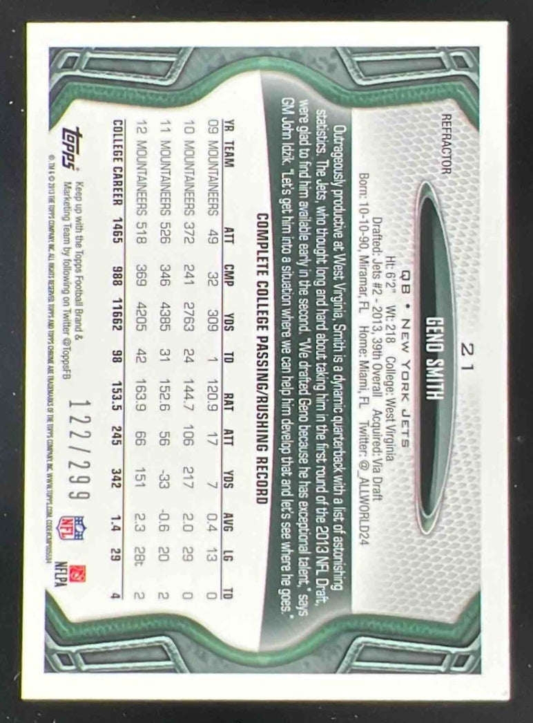 2013 Topps Chrome Black Refractors #21 Geno Smith RC /299