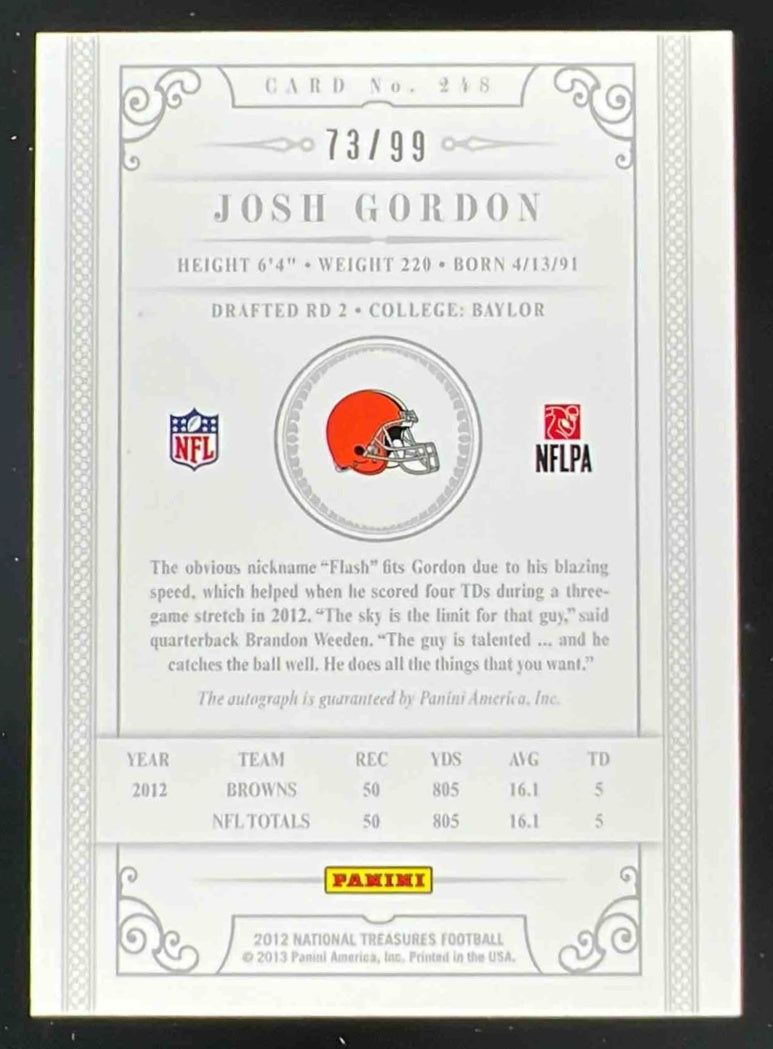 2012 Panini National Treasures #248 Josh Gordon RC Auto /99