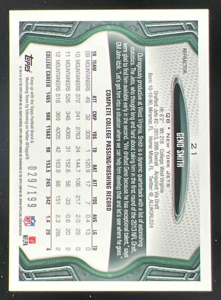 2013 Topps Chrome Blue Refractors #21 Geno Smith RC /199