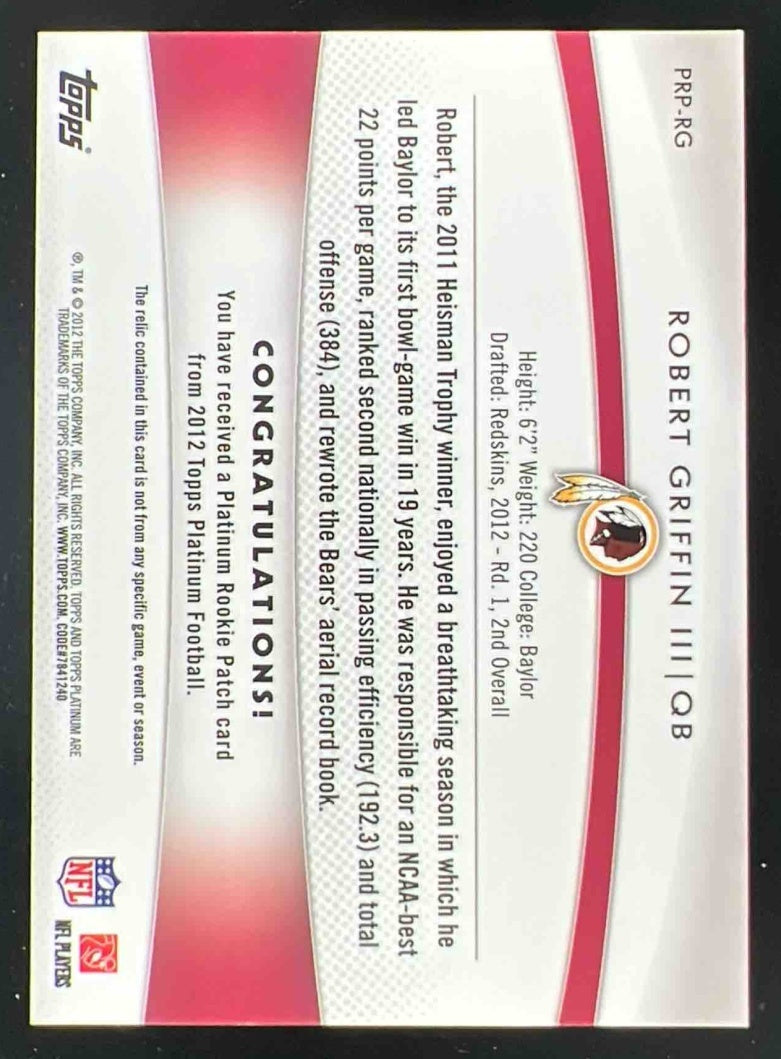 2012 Topps Platinum Rookie Jersey Patch #PRP-RG Robert Griffin III RC /71