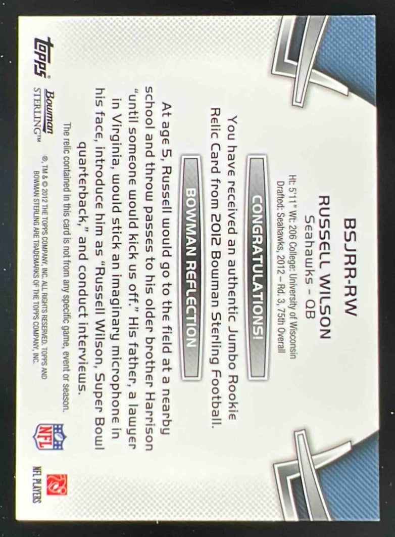 2012 Bowman Sterling Rookie Relics #BSJRR-RW Russell Wilson RC