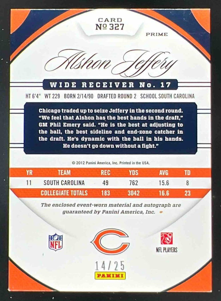 2012 Panini Certified Mirror Gold #327 Alshon Jeffery RC Auto /25