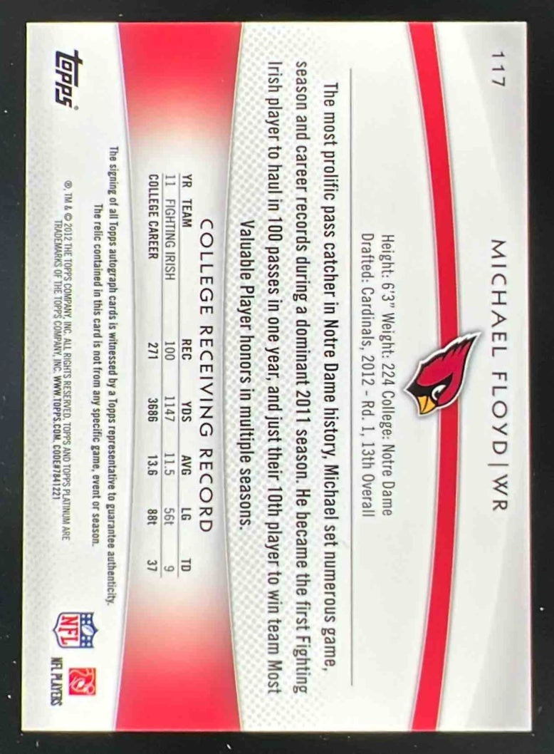 2012 Topps Platinum Rookie Patch Green Refractors #117 Michael Floyd RC Auto /99