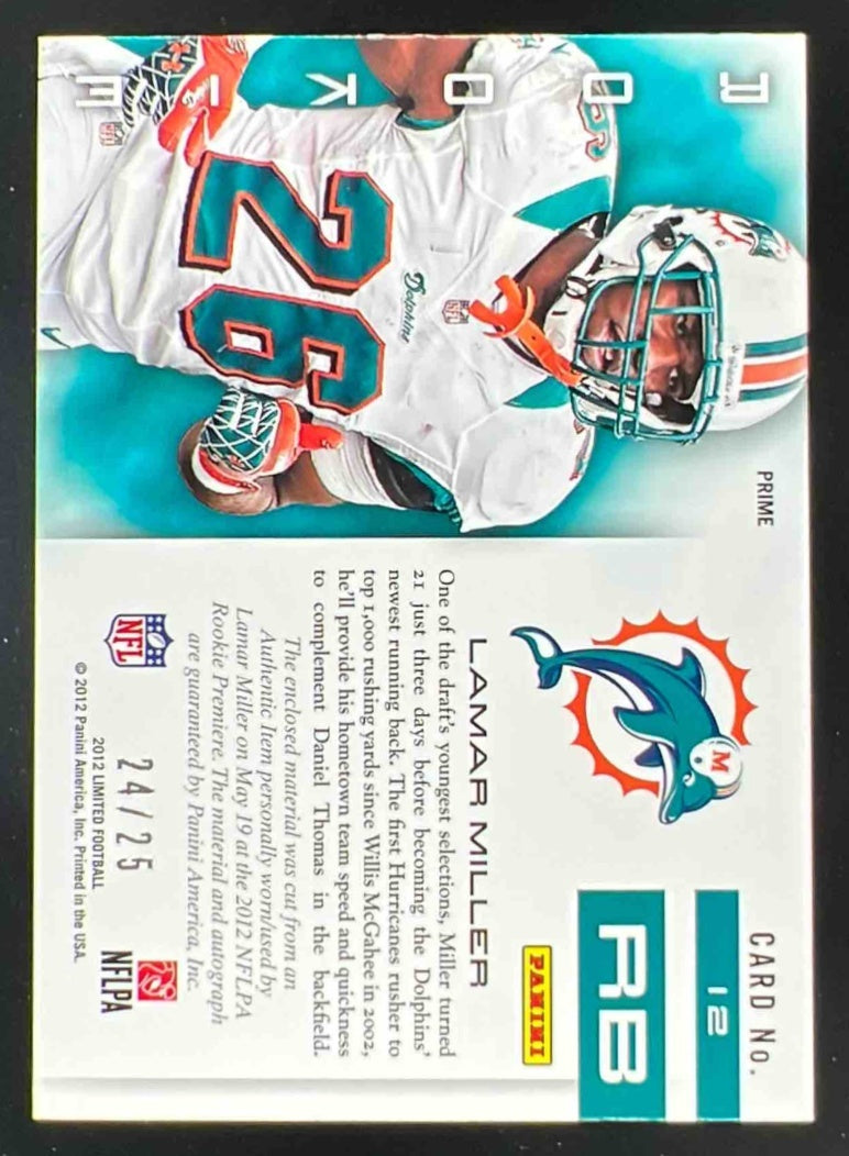 2012 Limited Rookie Jumbo Jerseys Jersey Number Prime Lamar Miller RC Auto /25