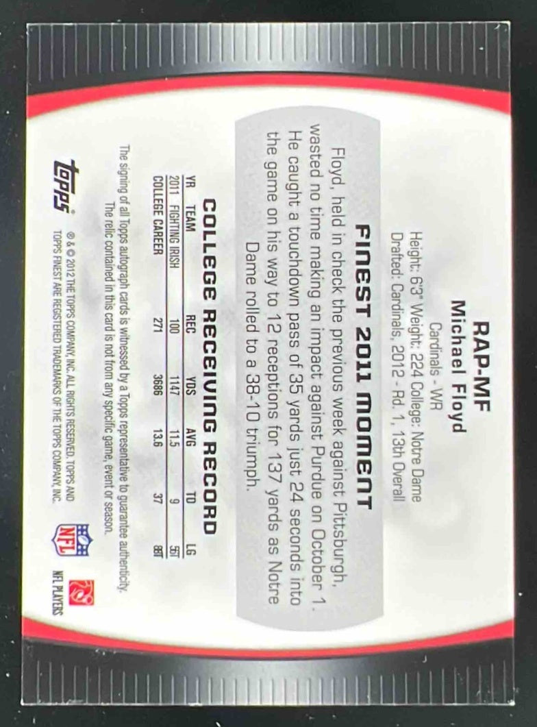 2012 Topps Finest Rookie Patch Pulsar Refractors #MF Michael Floyd RC Auto /25