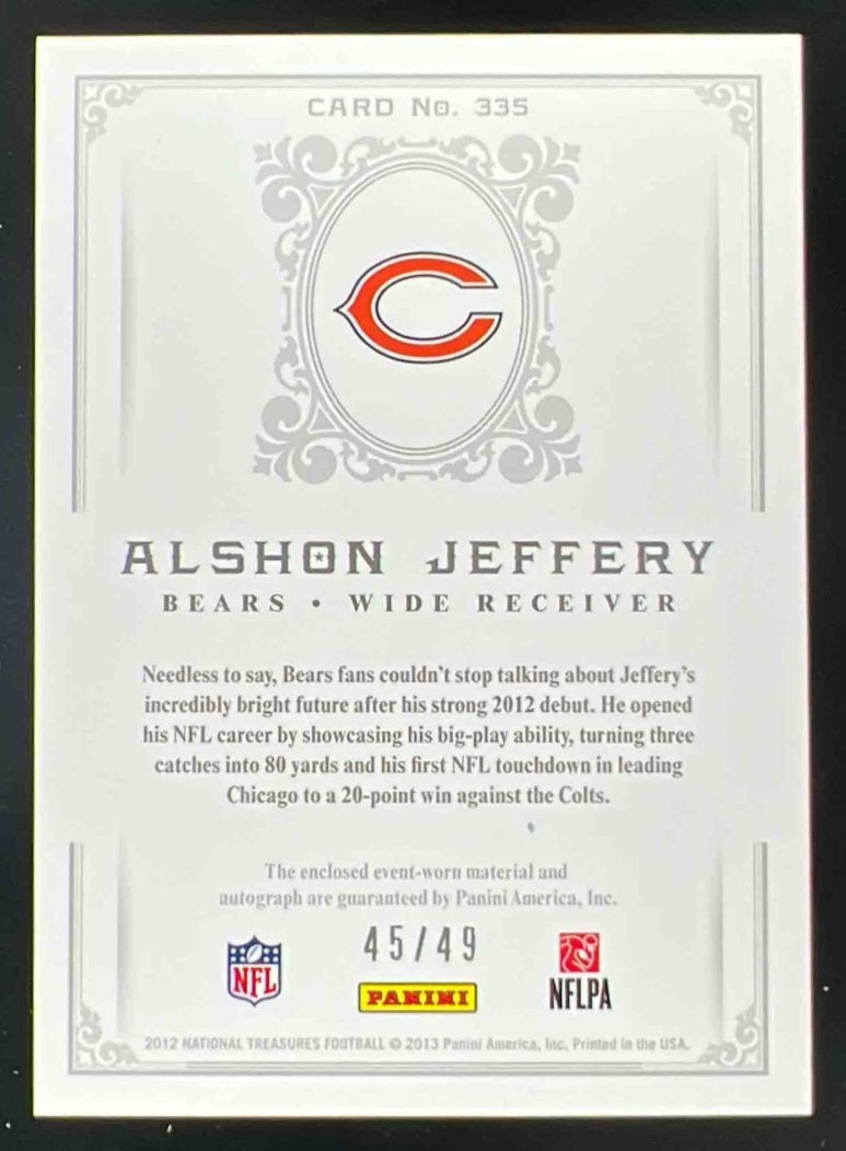 2012 National Treasures Rookie Material Gold #335 Alshon Jeffery RC Auto /49