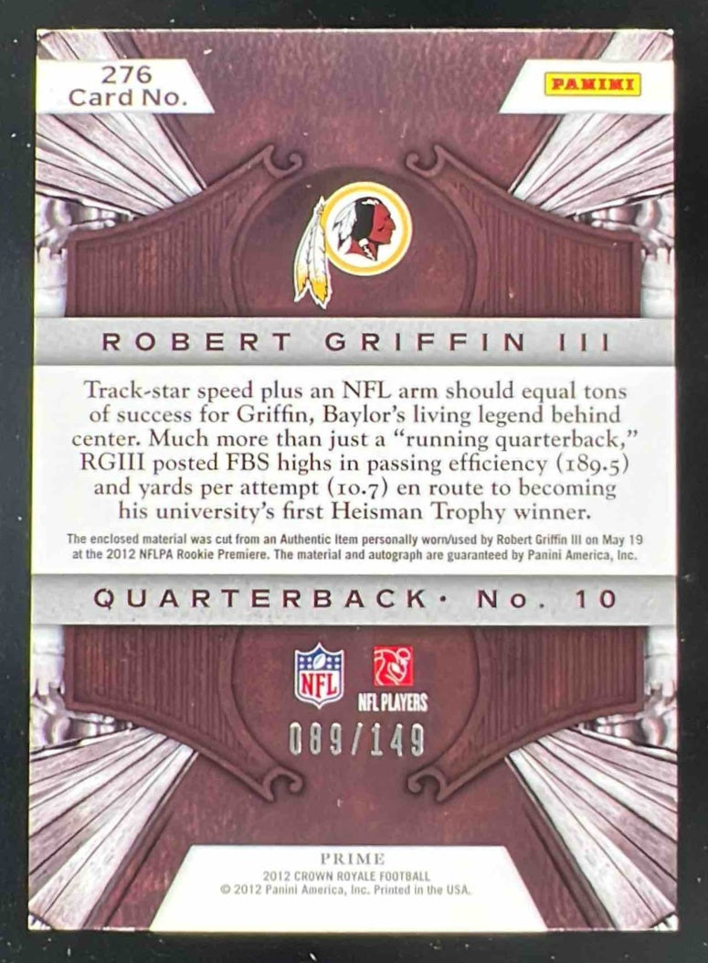 2012 Panini Crown Royale Silver Crown #276 Robert Griffin III RC Auto /149