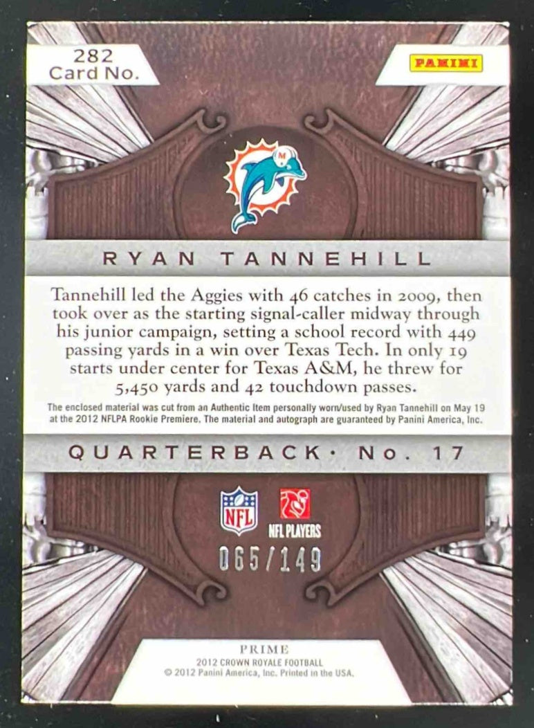 2012 Panini Crown Royale Silver Crown #282 Ryan Tannehill RC Auto /149