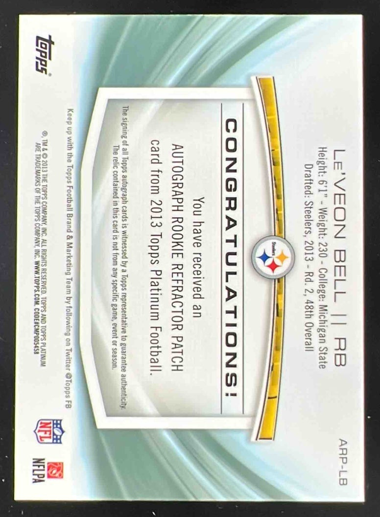 2013 Topps Platinum Rookie Patch Green Refractors #LB Le Veon Bell RC Auto /99