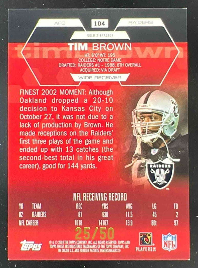 2003 Topps Finest Gold Xfractors #104 Tim Brown Auto /50