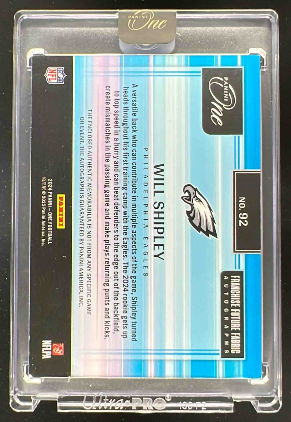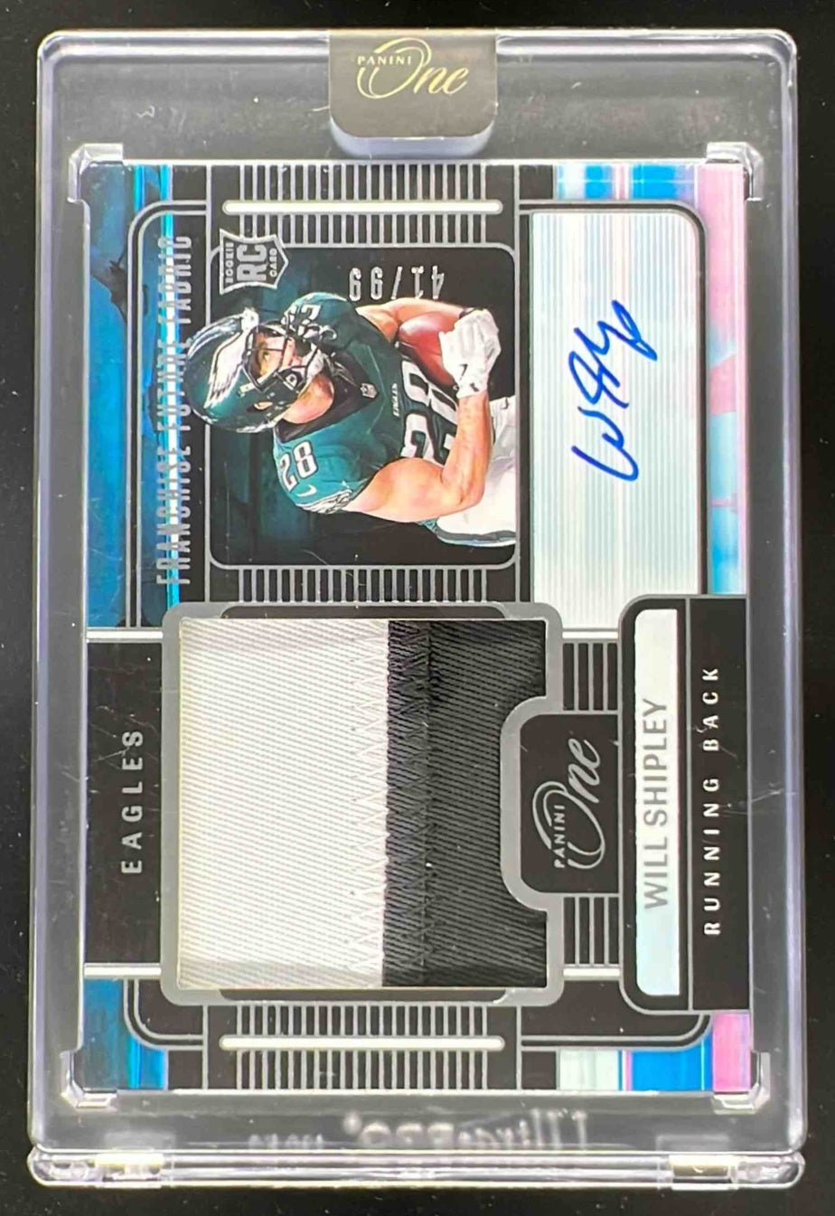 2024 Panini One Franchise Future Fabric Autographs #92 Will Shipley RC Auto /99