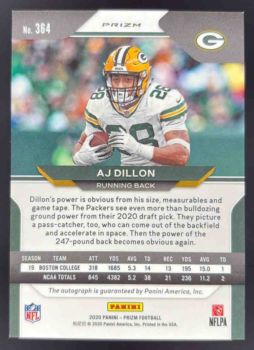 2020 Panini Prizm Rookie Autographs Prizm Pink #364 AJ Dillon Auto