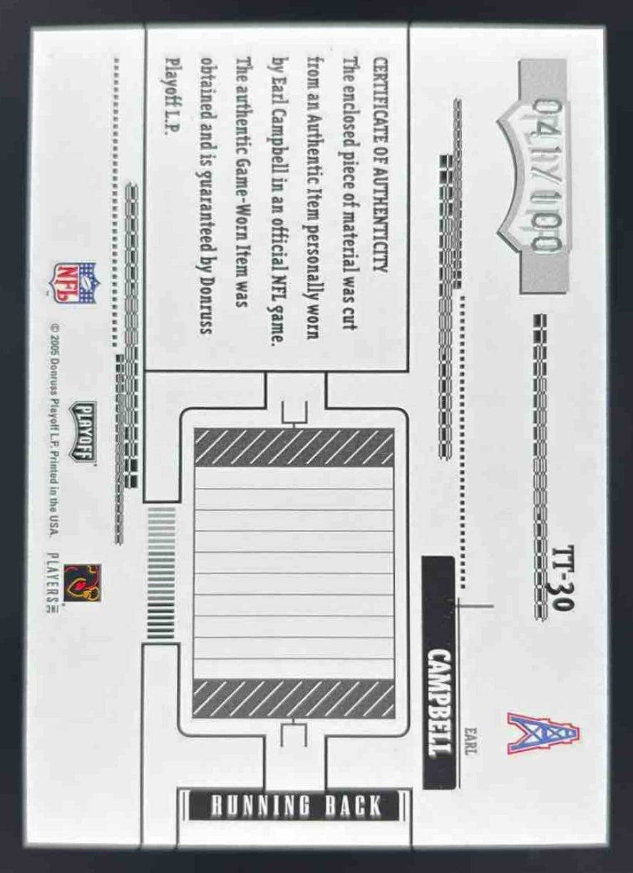 2005 Absolute Memorabilia Tools Trade Material Red #TT-30 Earl Campbell /100