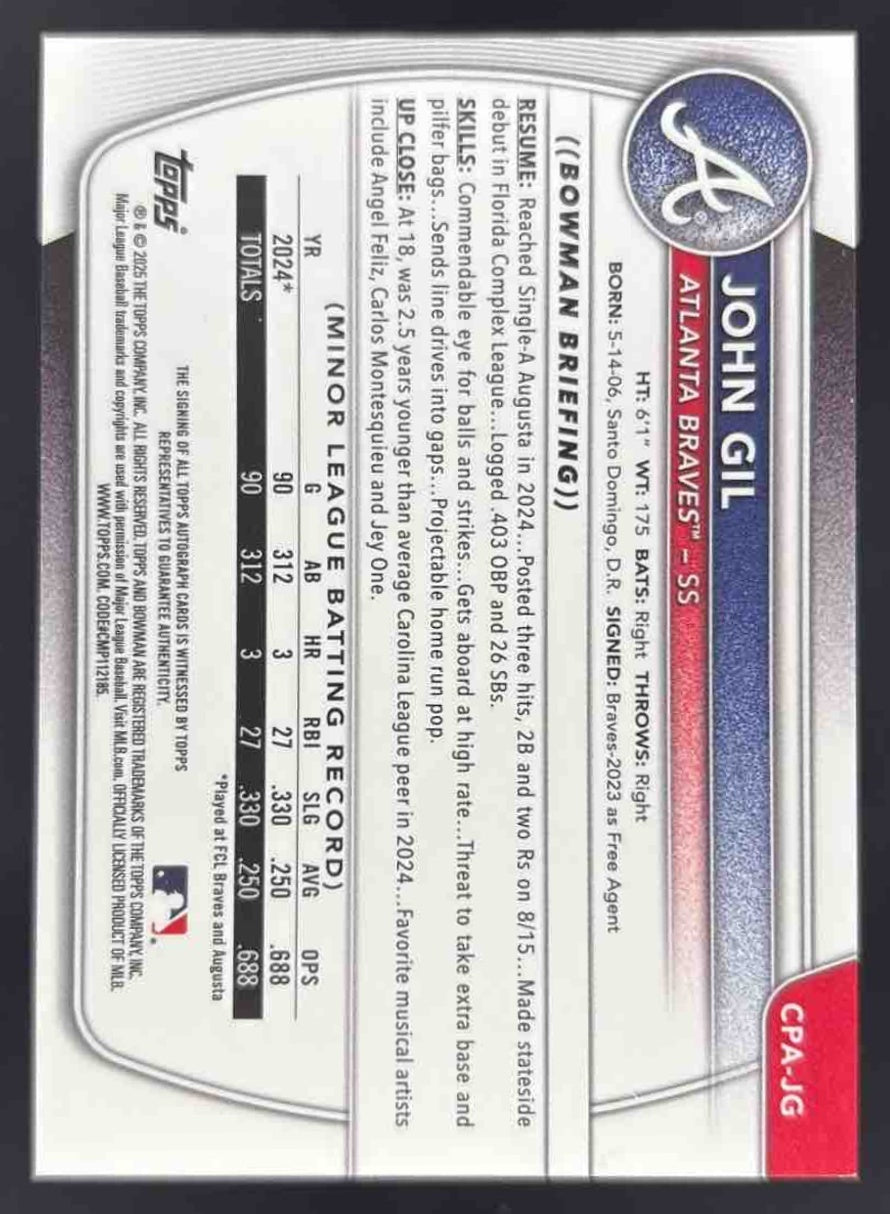 2025 Bowman Chrome Autograph #CPA-JG John Gil RC Auto