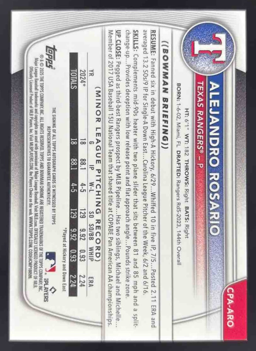 2025 Bowman Chrome Prospect Autograph #CPA-ARO Alejandro Rosario Auto