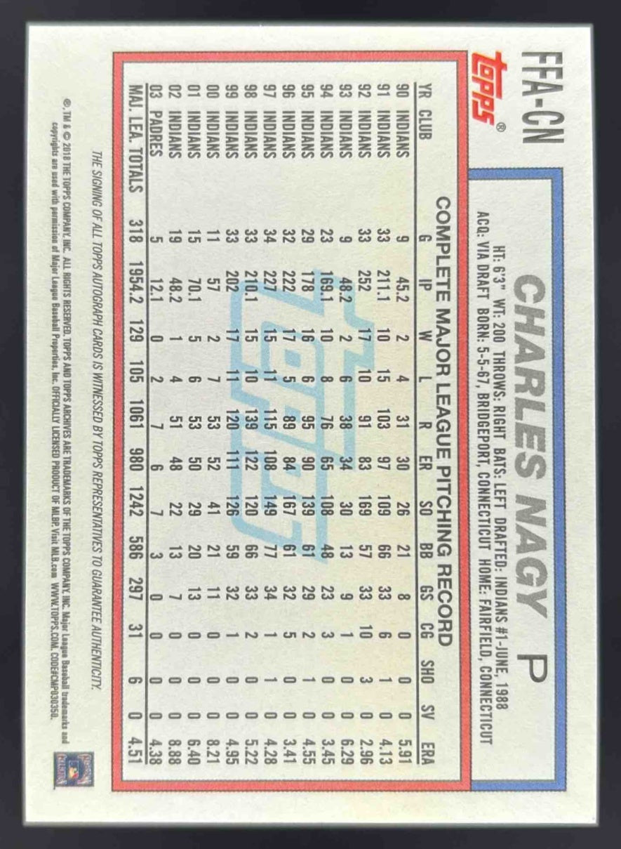 2018 Topps Archives Fan Favorites Autographs #FFA-CN Charles Nagy Autograph Auto