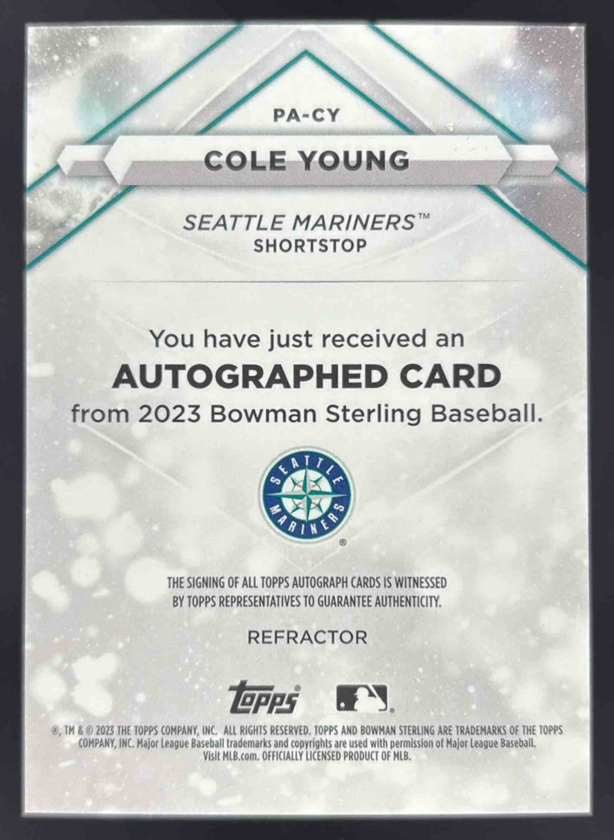 2023 Bowman Sterling Autographs Refractor #PA-CY Cole Young Autograph Auto /150