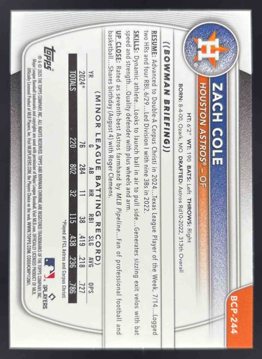 2025 Bowman Chrome Prospects Purple Wave Refractor #BCP-244 Zach Cole RC /250