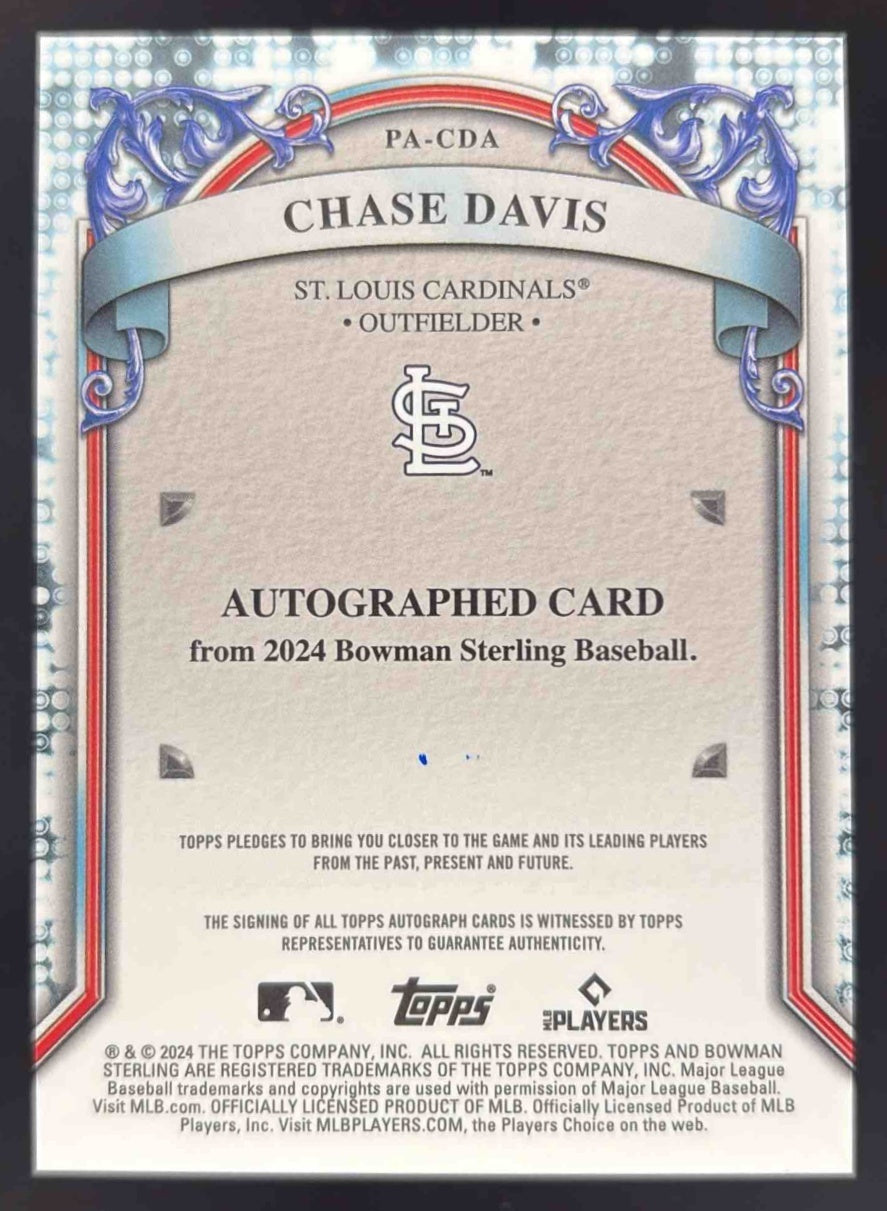 2024 Bowman Sterling Prospect Autographs #PA-CDA Chase Davis Auto