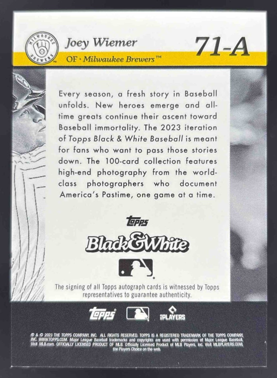 2023 Topps Black & White Autograph Background Color #71 Joey Wiemer RC Auto /49