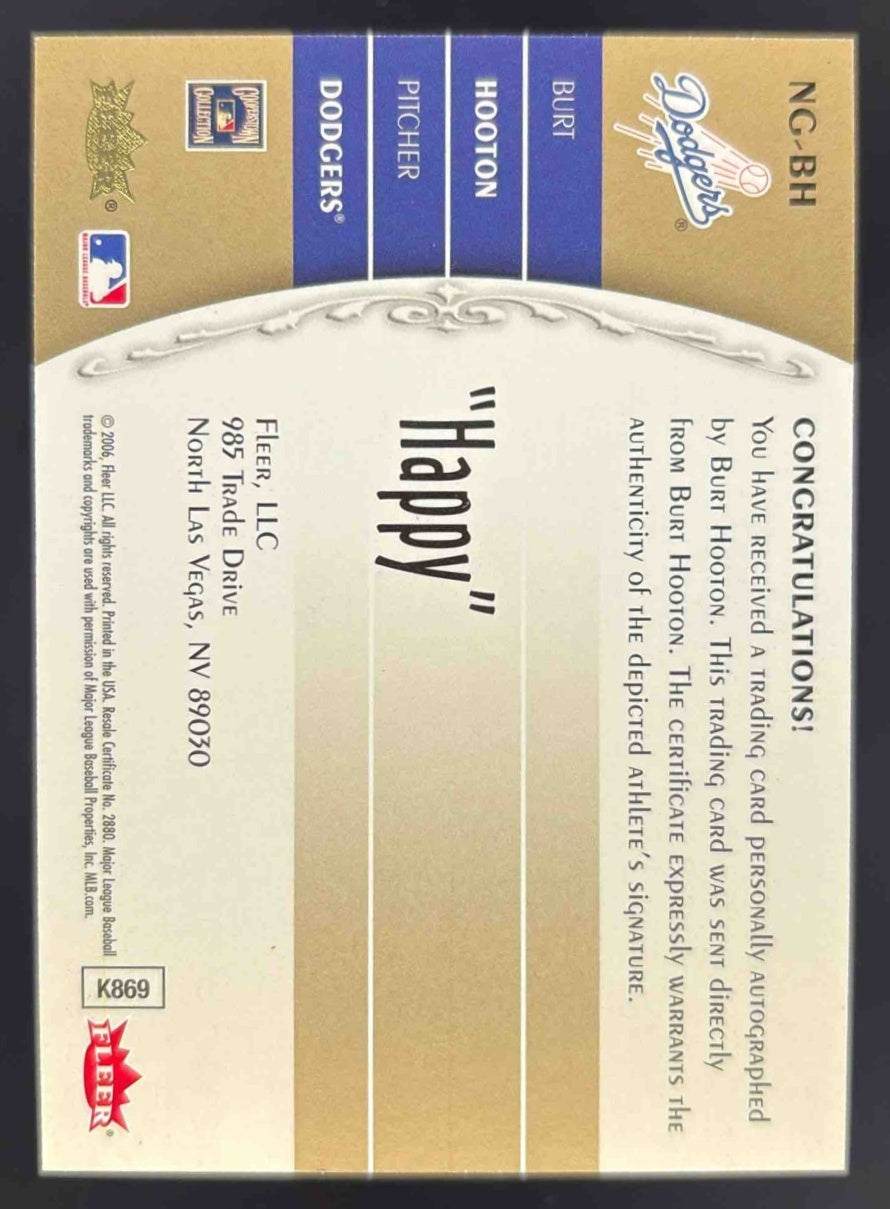 2006 Fleer Greats of the Game Nickname Greats Autographs #NG-BH Burt Hooton Auto