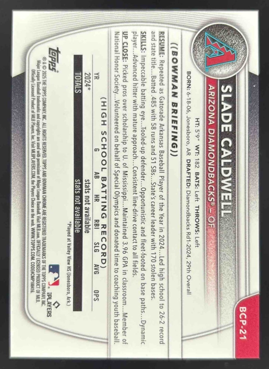 2025 Bowman Chrome Prospects Wave Refractor #BCP-21 Slade Caldwell RC /350