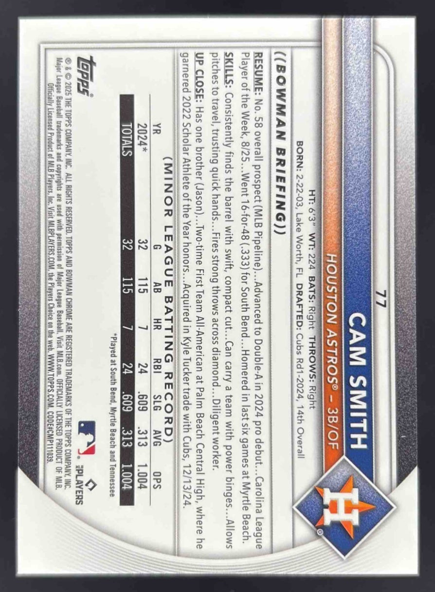 2025 Bowman Chrome Mega Box Aqua Mojo Refractor #77 Cam Smith RC /299