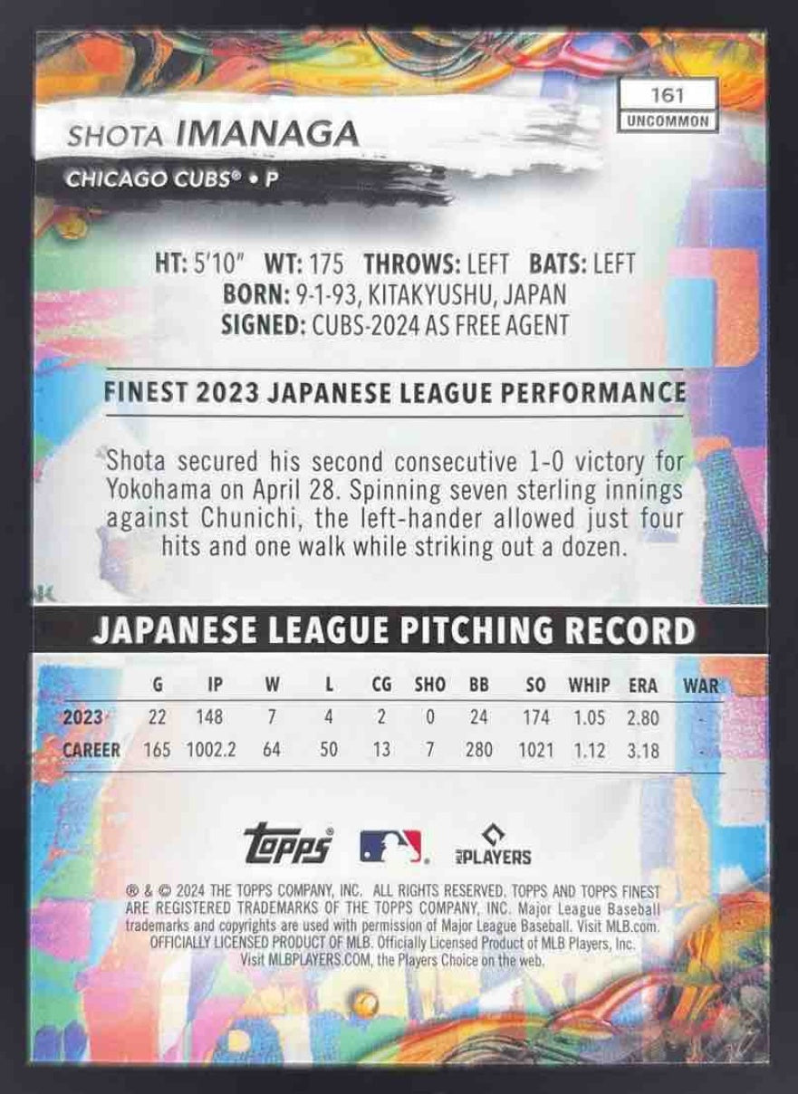 2024 Topps Finest Blue Checkerboard Refractor #161 Shota Imanaga RC /75