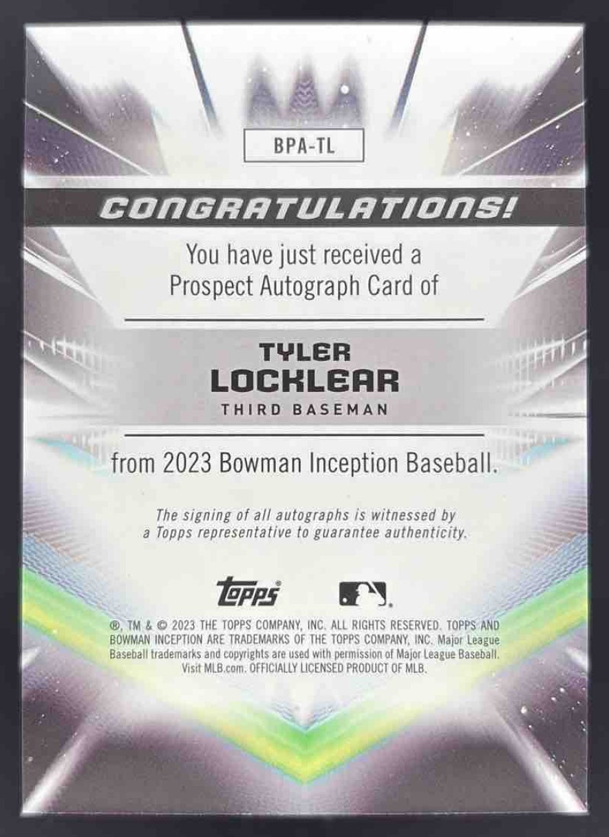 2023 Bowman Inception Autographs #BPA-TL Tyler Locklear Autograph Auto /300