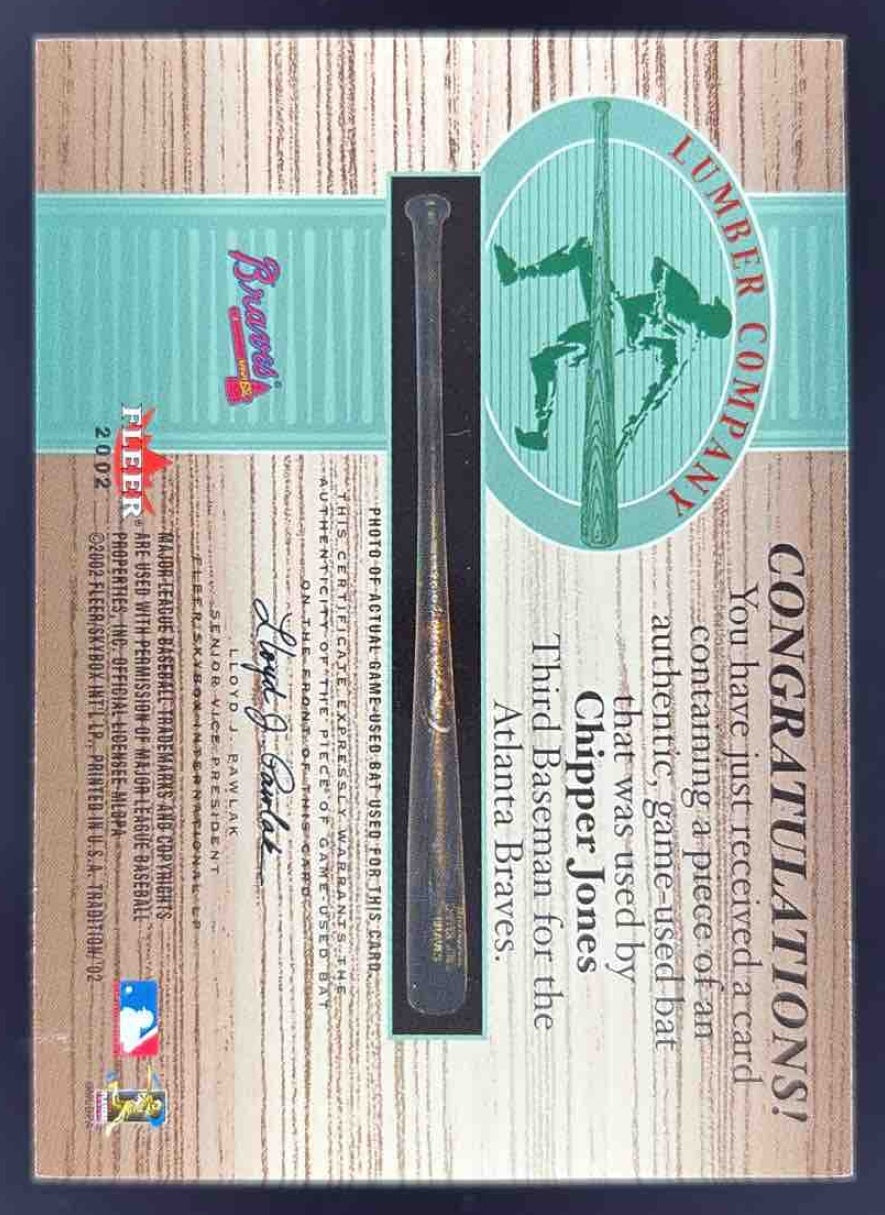 2002 Fleer Tradition Lumber Company Game Bat #NNO Chipper Jones