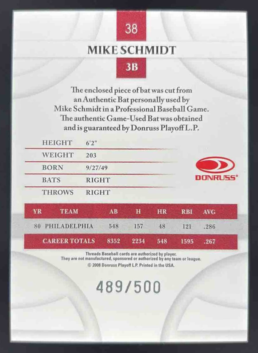 2008 Donruss Threads Bats #38 Mike Schmidt /500